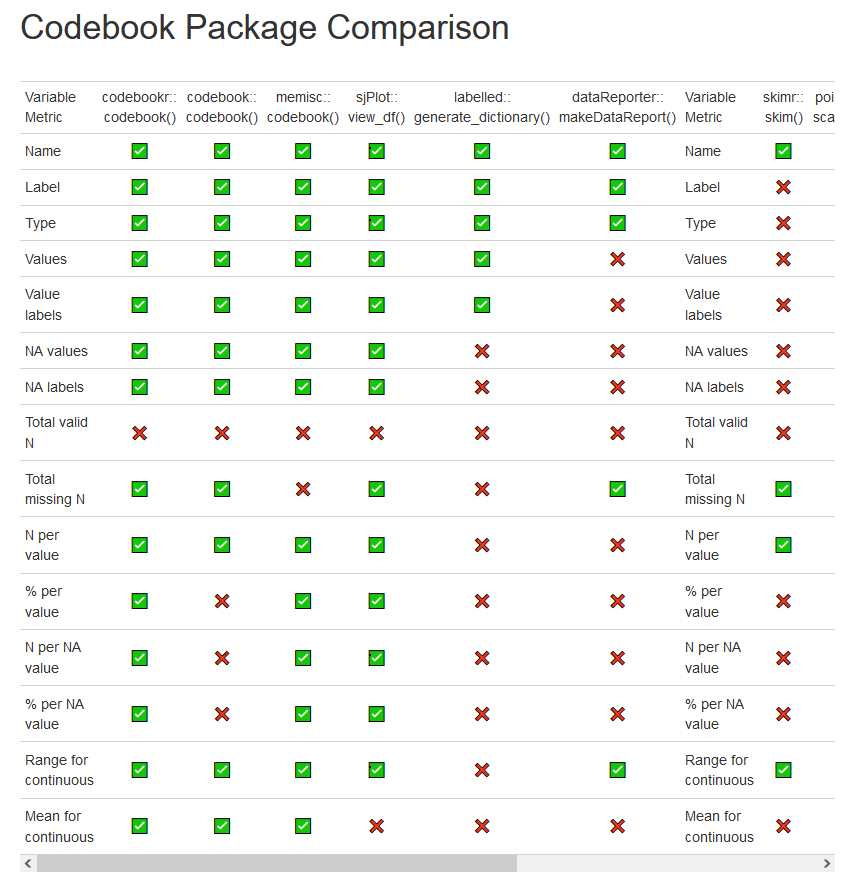Like I mentioned, I initially reviewed 10 packages but narrowed down to the 4 I showed you today because a) they either didn’t work well with haven labelled data or b) they didn’t meet enough of the criteria I was looking for. But if you are interested, you can review a table of all the packages I tried in my GitHub repo here