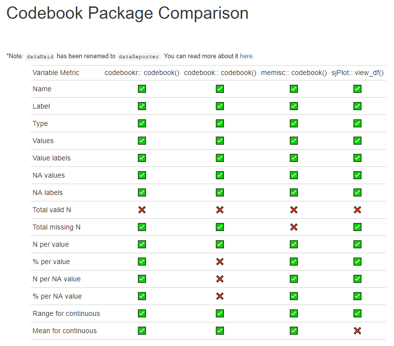 The codebookr has one function that allows you to create a codebook, and that function is “codebook”